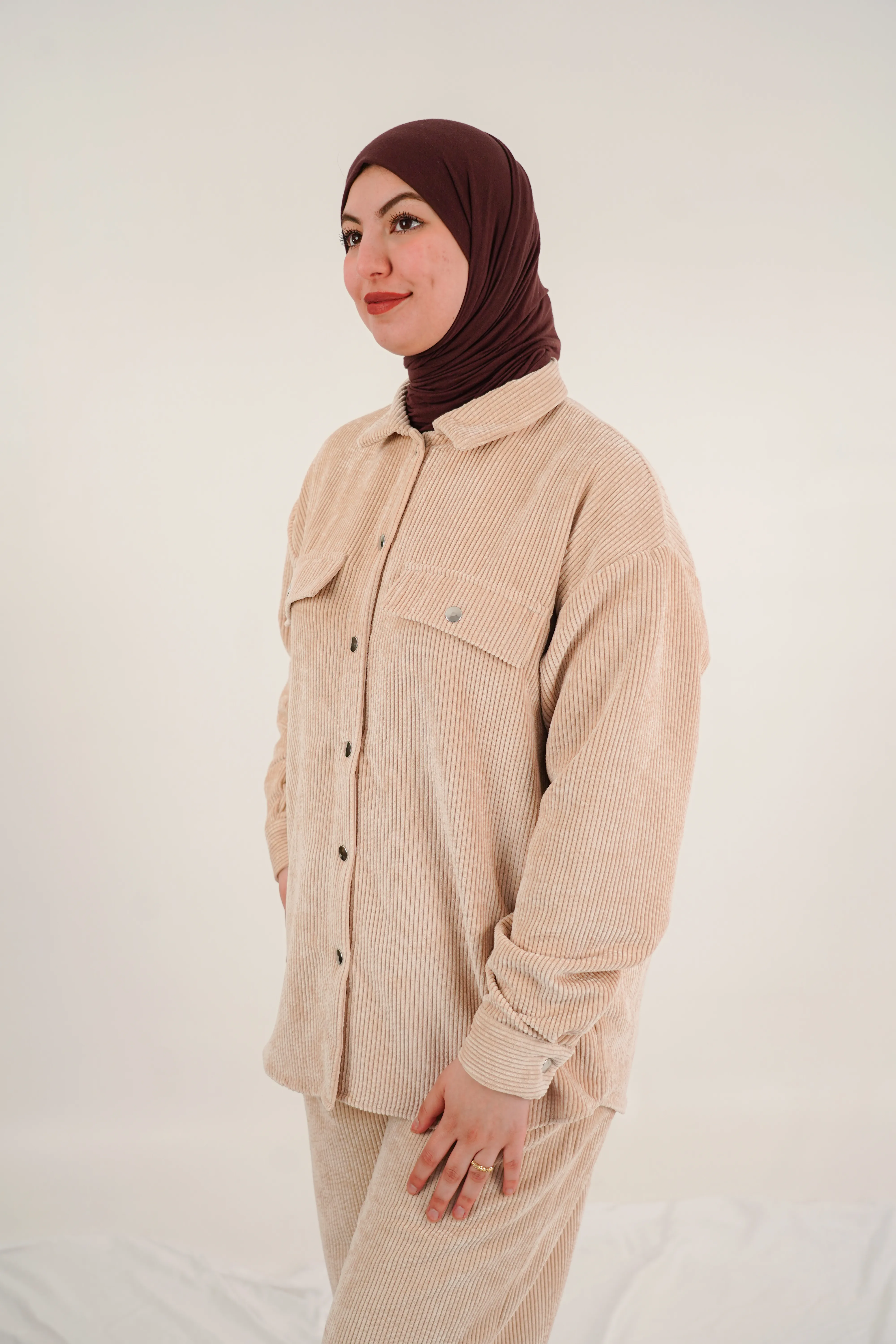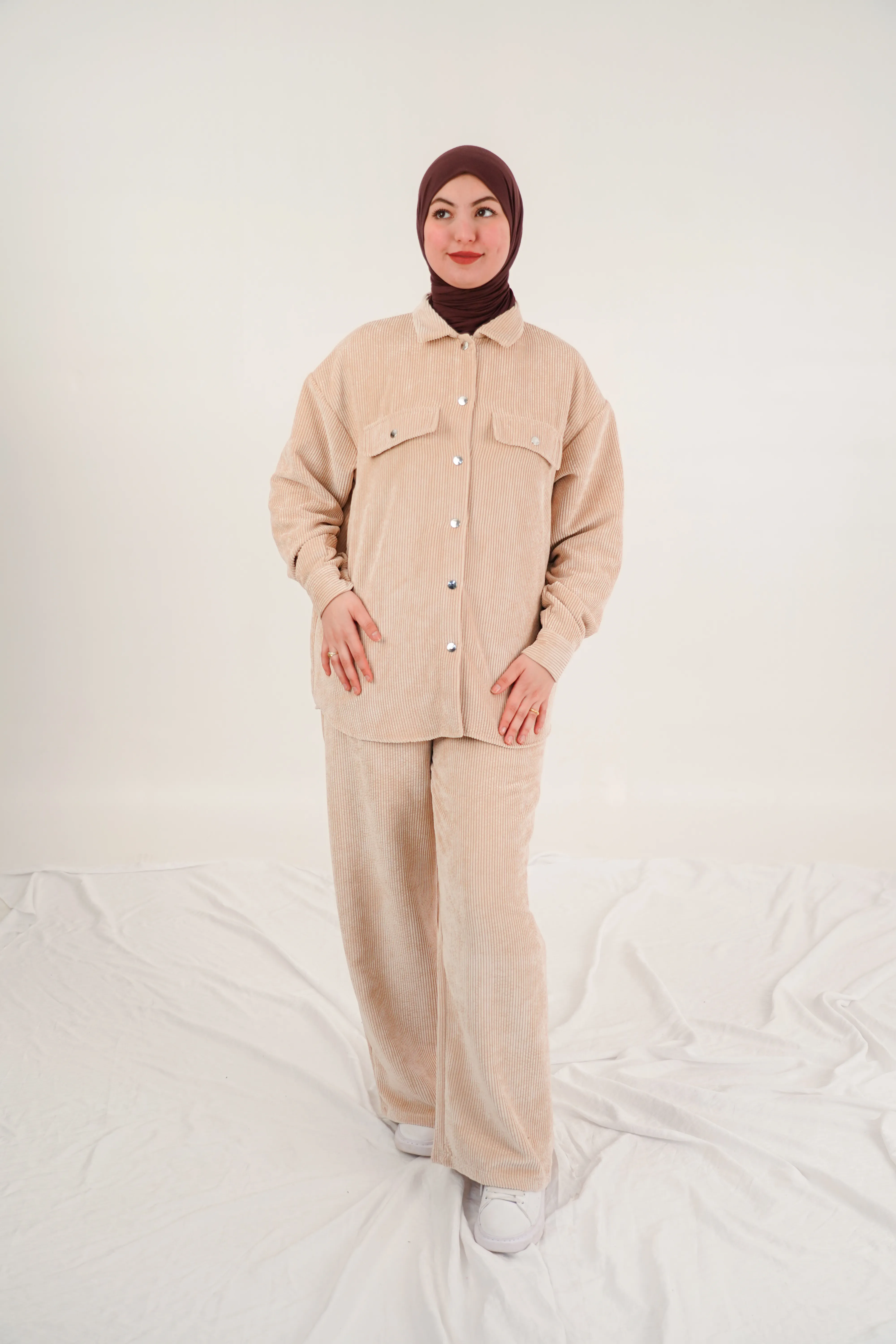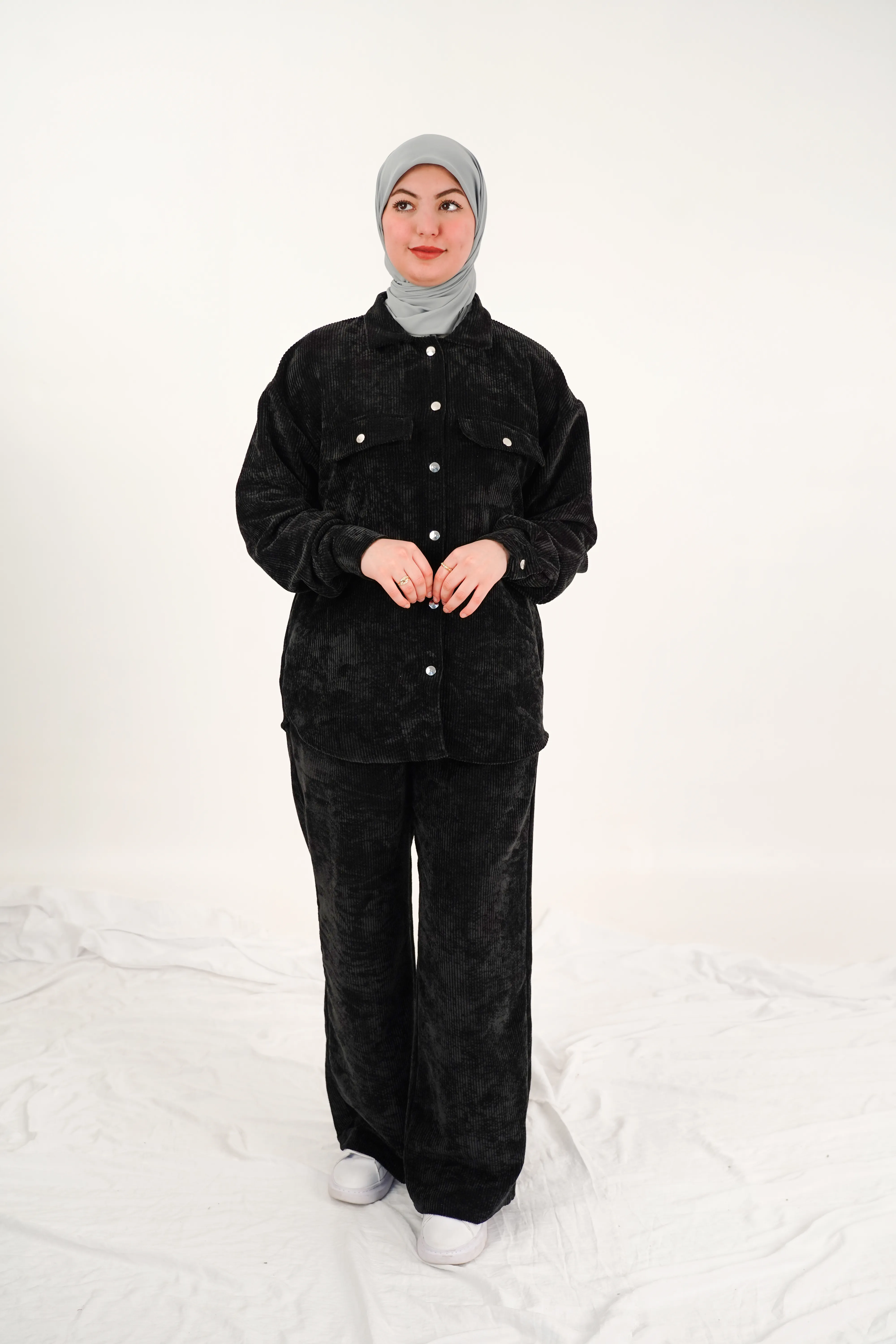 أونسومبل نسائي عملي بفصالة مريحة وستايل بسيط كيناسب الاستعمال اليومي. مصنوع من قماش ڭاتيفا عالي الجودة، المعروف بملمسه الناعم، دفئه، وتحمله مع الاستعمال.