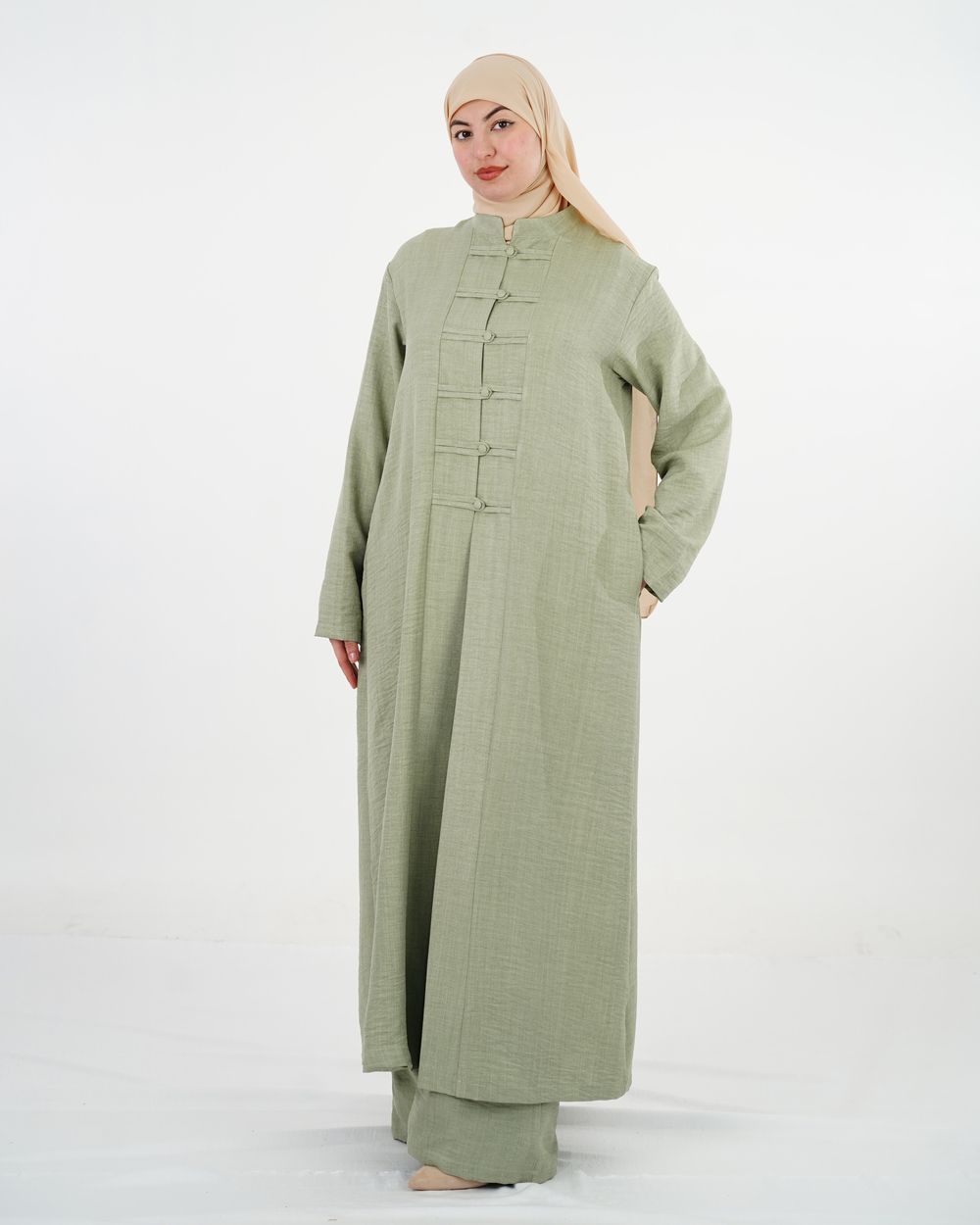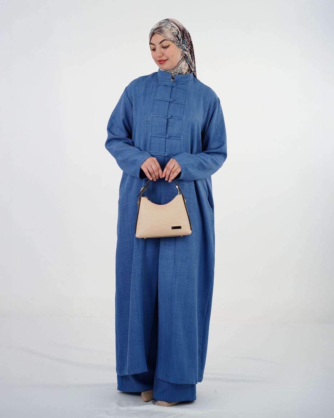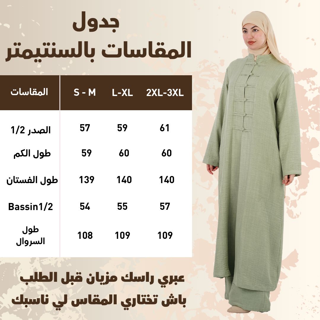 مصنوع من قماش lin عالي الجودة، خفيف على الجسم وكيعطيك واحد الستايل راقي وبسيط.