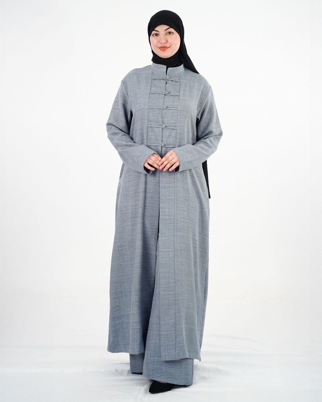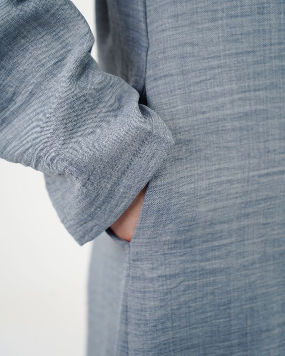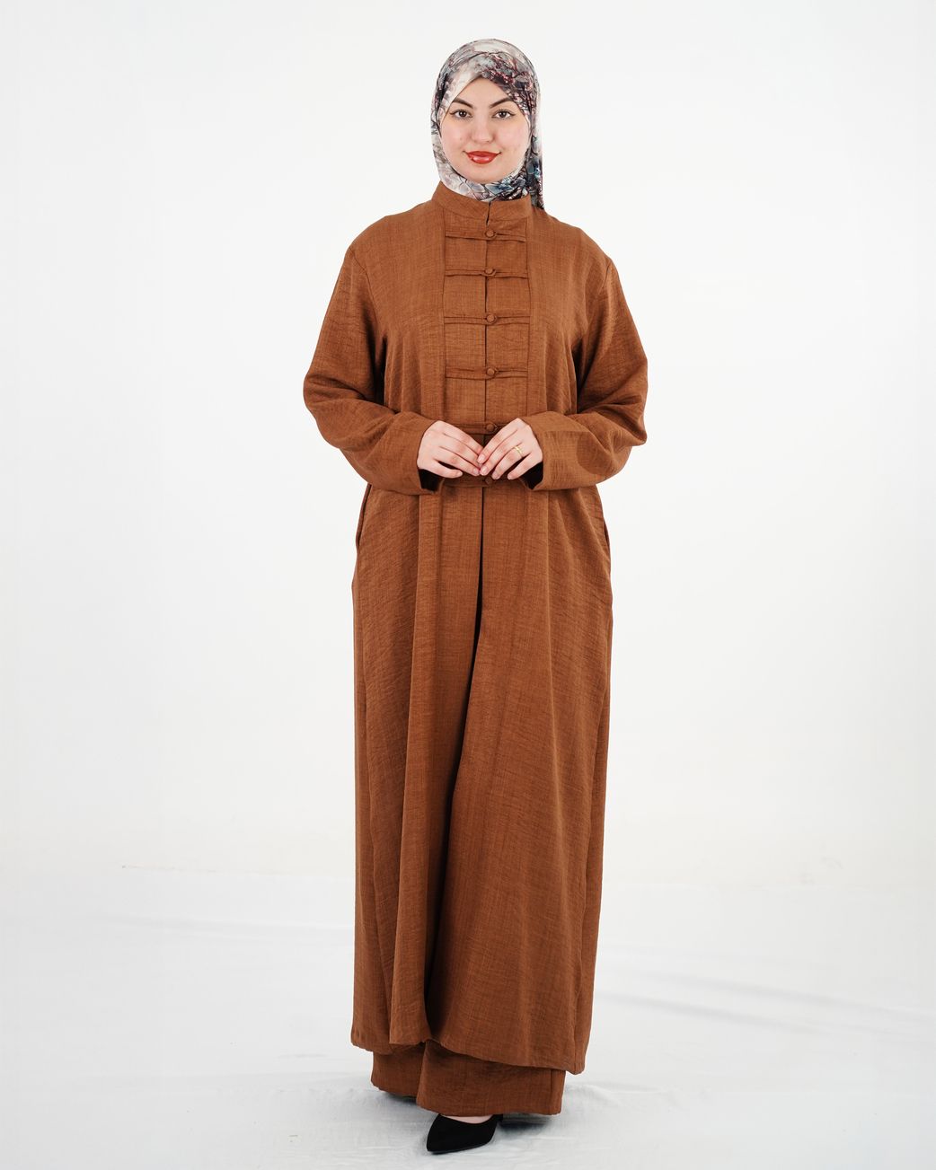 مصنوع من قماش lin عالي الجودة، خفيف على الجسم وكيعطيك واحد الستايل راقي وبسيط.