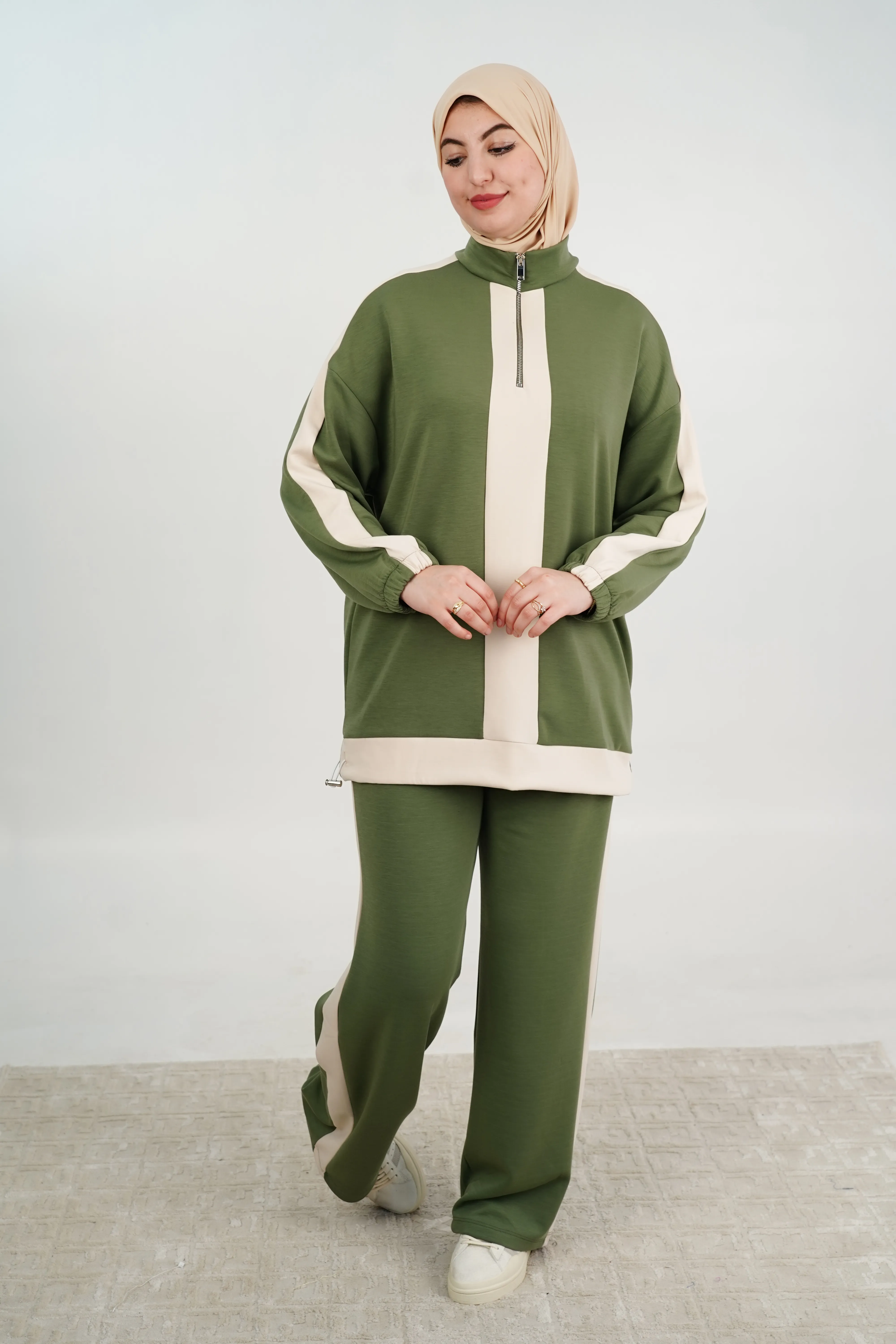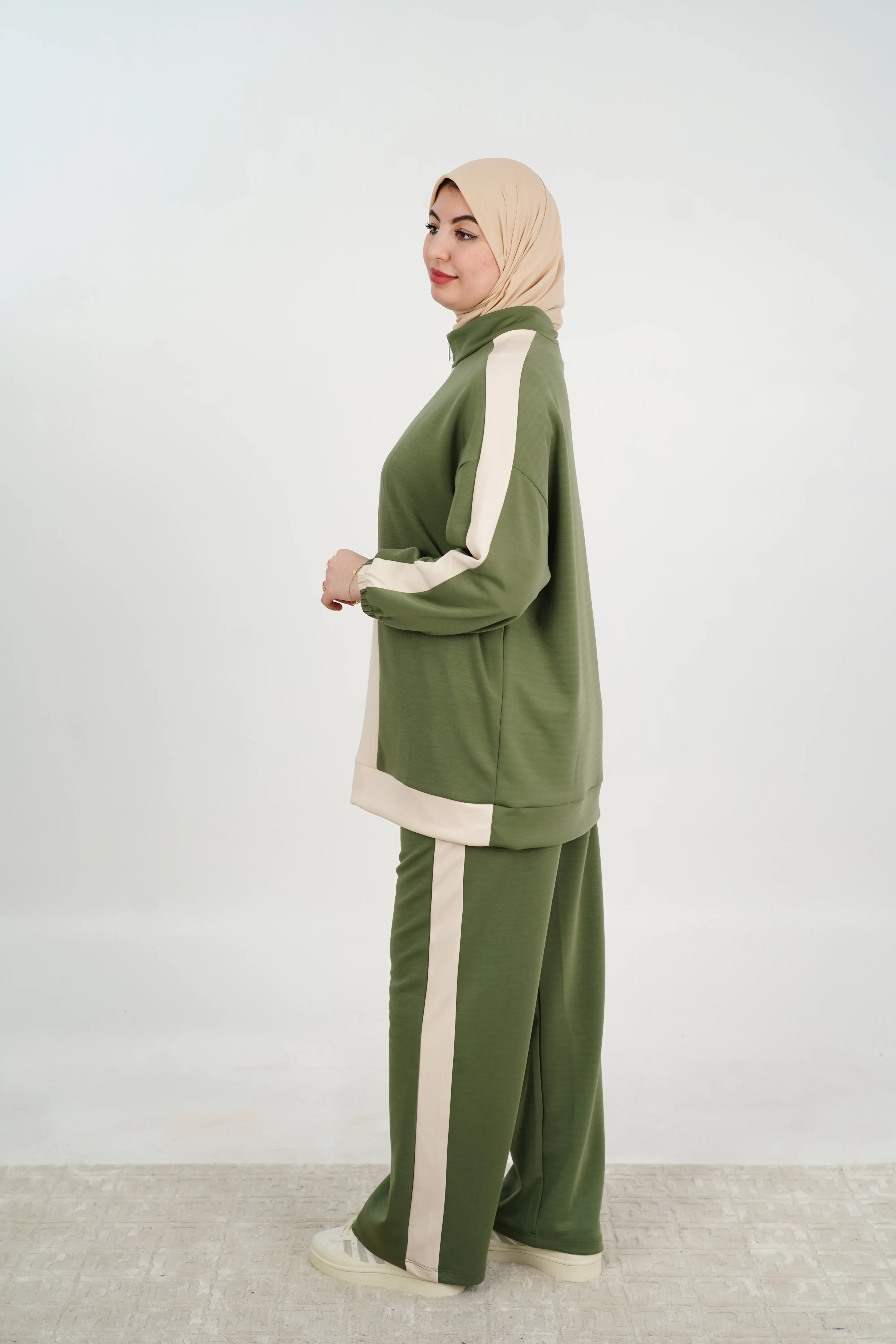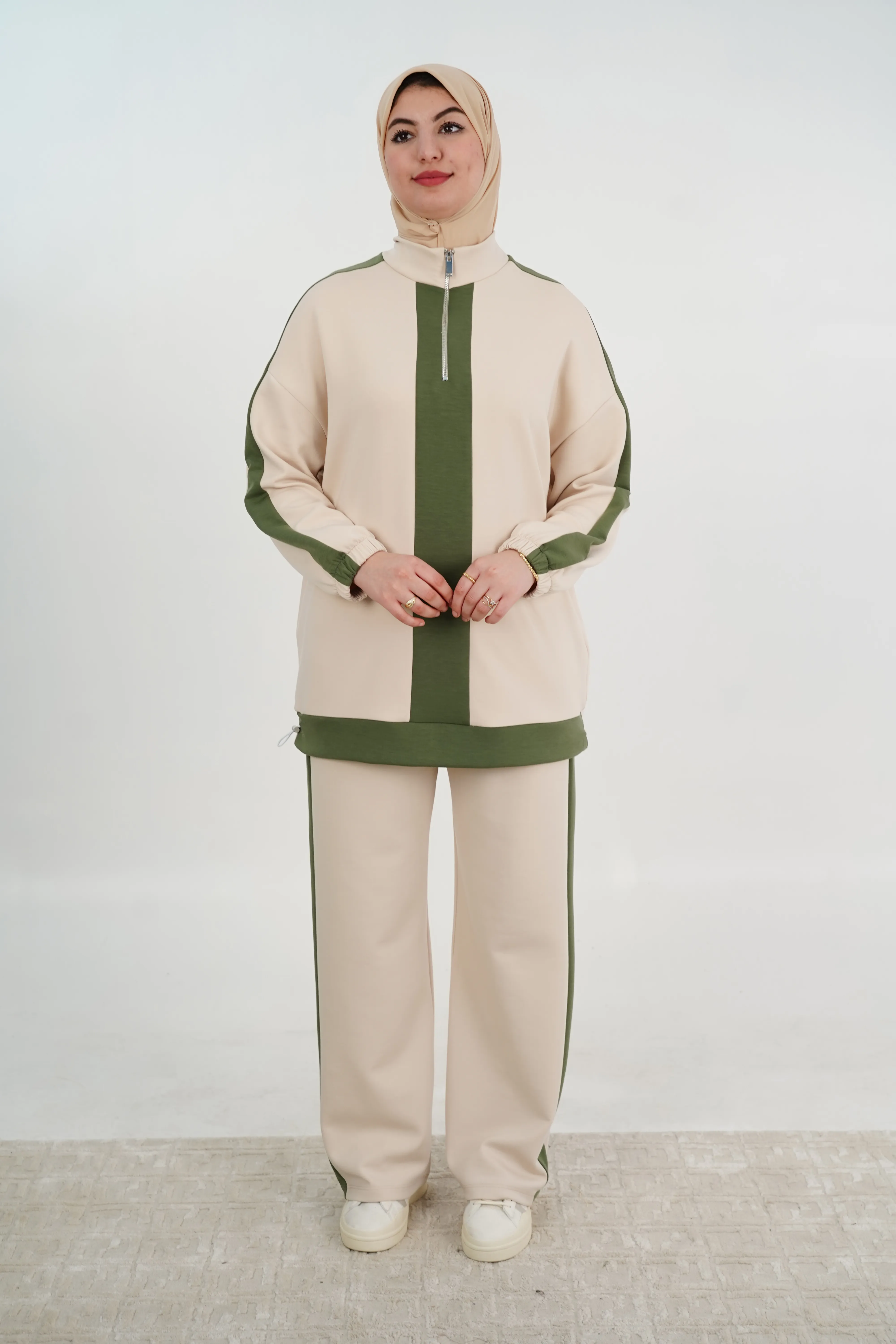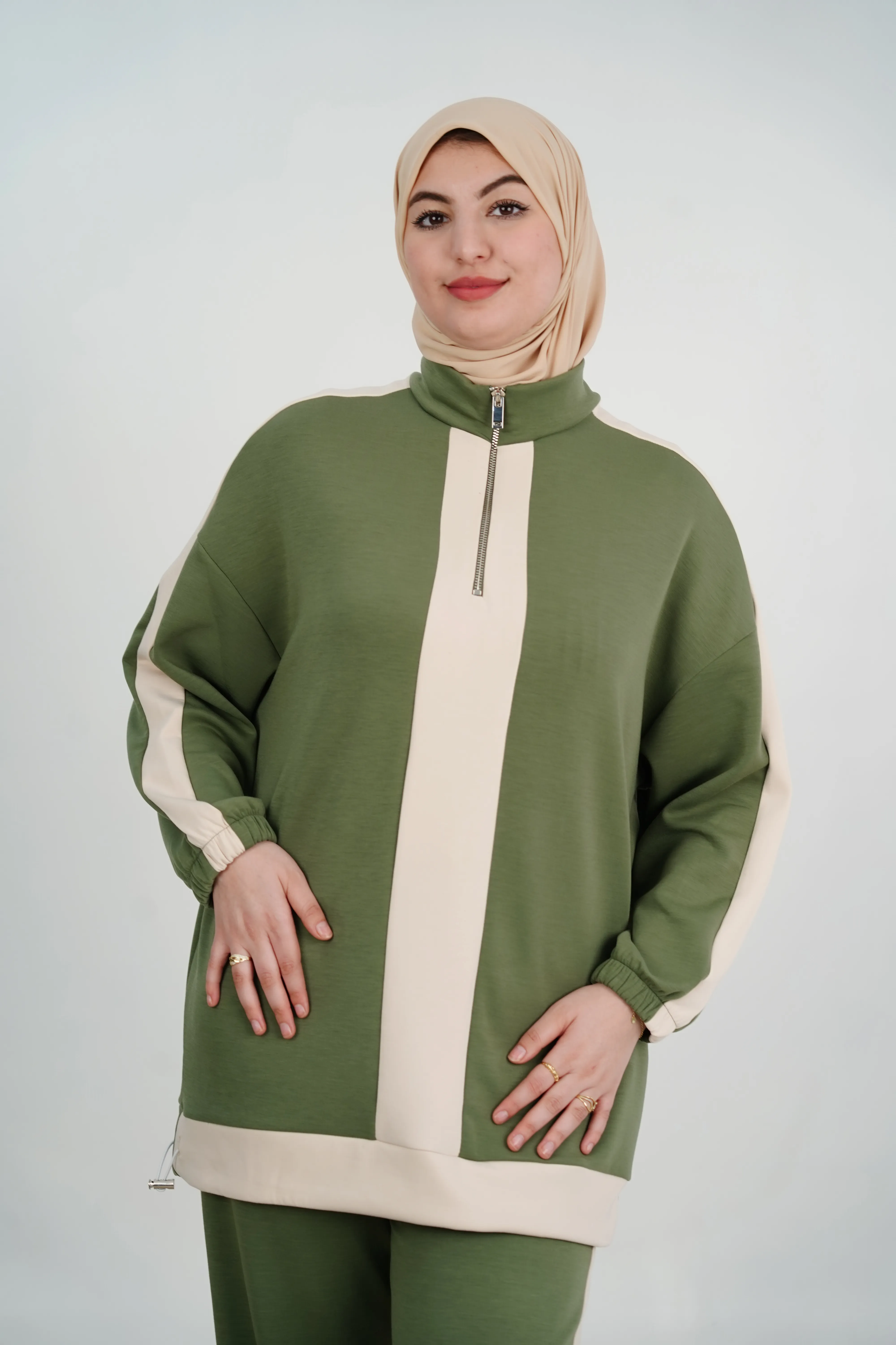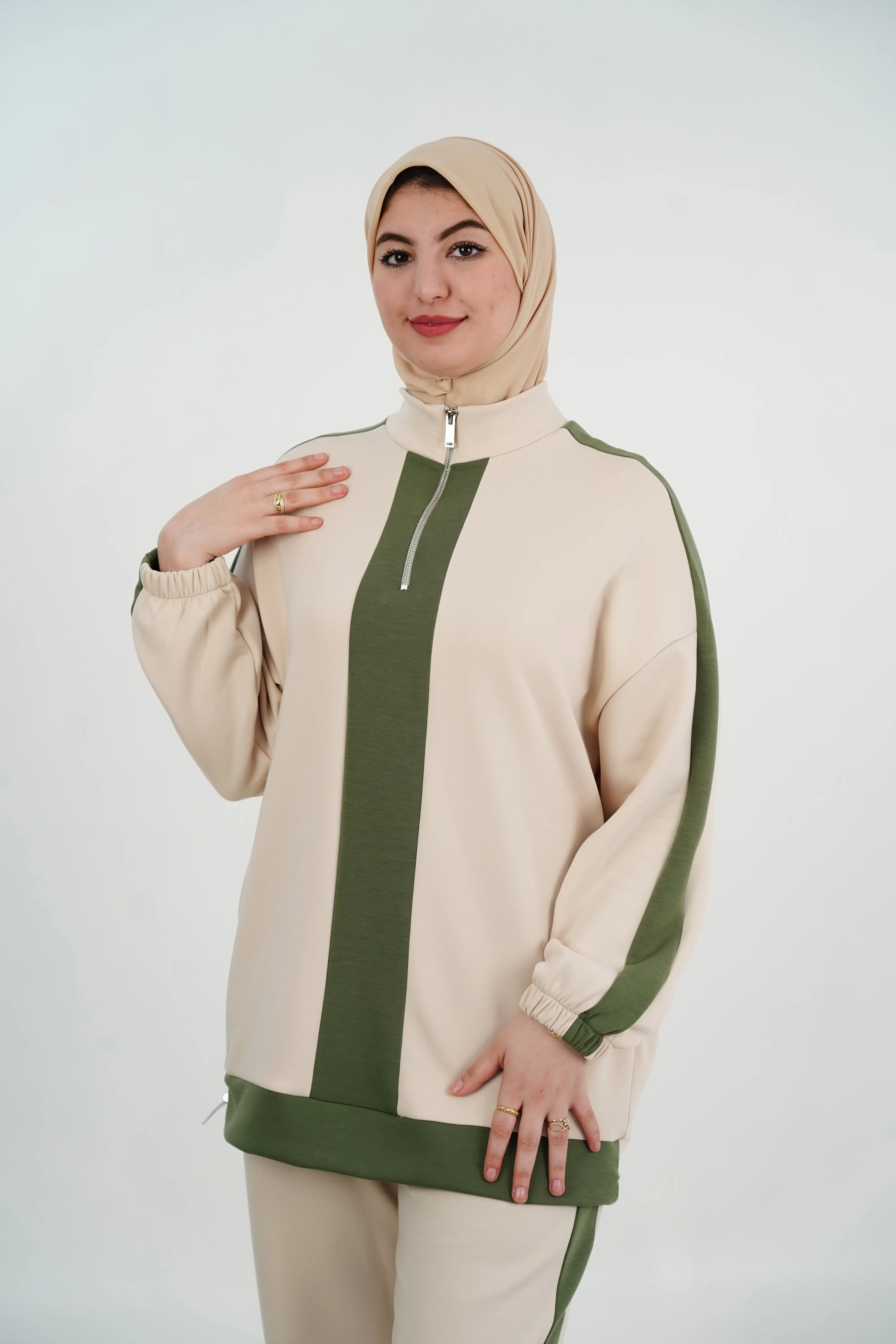 هاد الطقم النسائي السبور معمول للمرأة اللي كتفضل الراحة فاللباس مع ستايل بسيط وأنيق.